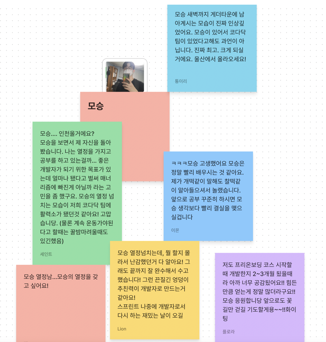 스프린트 정말 많이 도움이 됐고 꼭 10기나 11기로 성장한 모승이 되어 참여하고 싶다.
